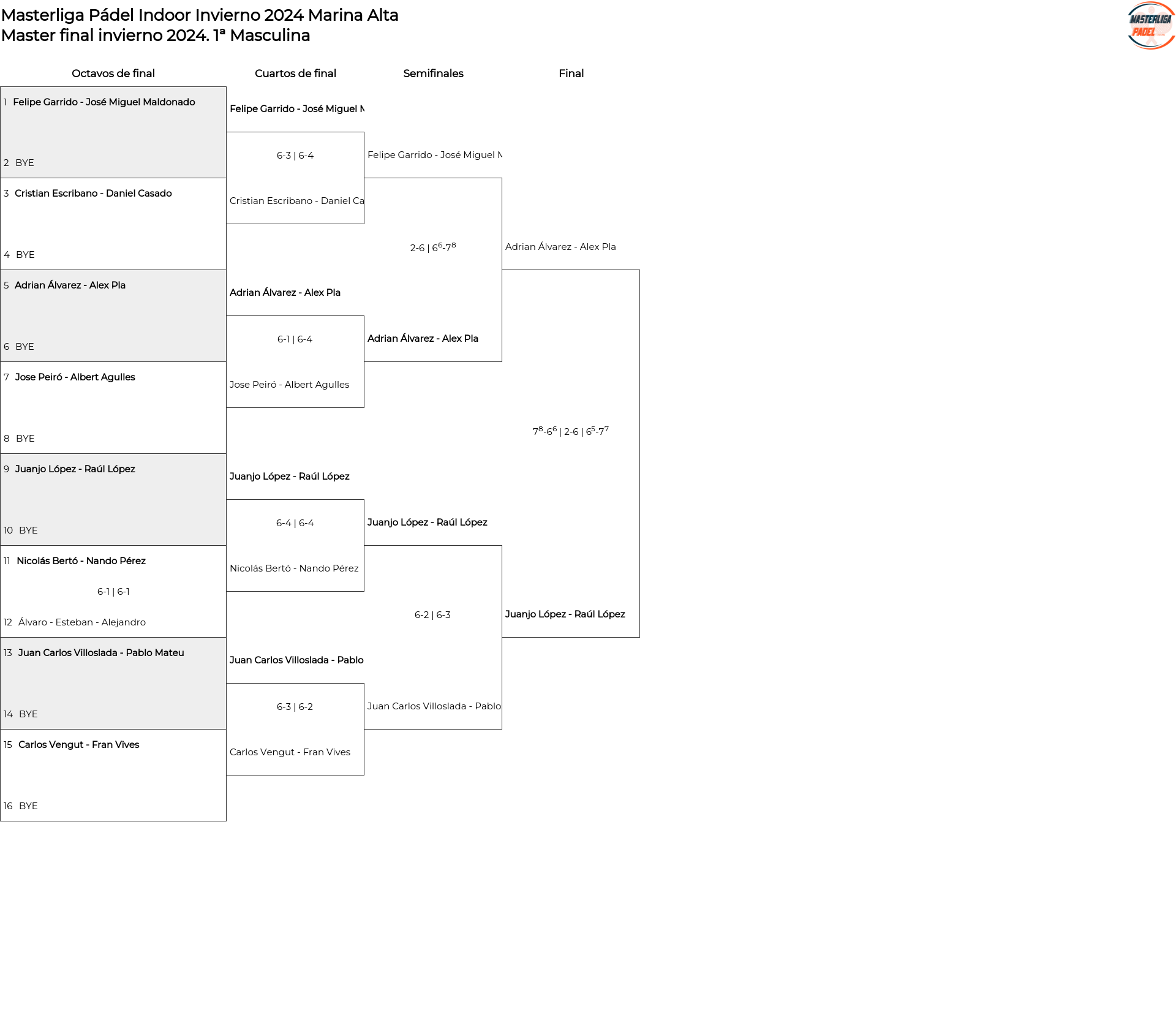 Masterliga Pádel Indoor Invierno 2024 Marina Alta